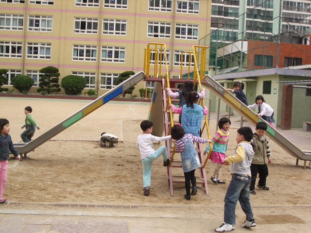 혼자 흙장난 하는 애.... 계단 새치기 하는 애.... ^^ 갖가지의 성격들...^^